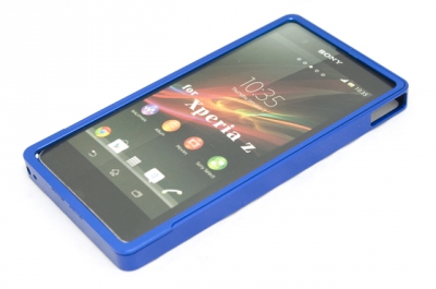 Бампер металлический для Sony Xperia Z, синего цвета . Чехол-бампер состоит из металла, который располагается по краям Вашего смартфона.